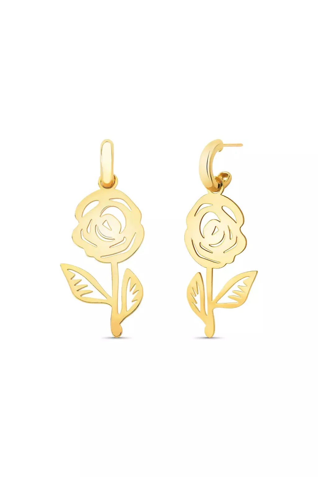O Brinco Fiore Maria Dolores é um brinco longo folheado a Ouro que une delicadeza e modernidade em uma peça versátil. Sua base em formato de argola sustenta um pingente vazado em metal cortado a laser, que desenha a silhueta de uma flor com folhas. O design combina leveza e movimento, transformando um símbolo clássico em uma joia contemporânea. O pingente removível permite diferentes formas de uso, adaptando-se ao styling de cada ocasião, do casual ao sofisticado. Um brinco que traduz feminilidade e personalidade, perfeito para iluminar a produção com um detalhe marcante e atemporal.